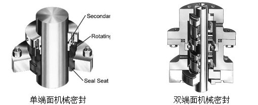 機械密封有單端面機械密封和雙端面機械密封兩種,單端面機械密封價格較低,當單端面機械密封不能達到要求時,需用雙端面機械密封。