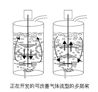 氣液攪拌中,為了得到更長的氣體停留時間,或者更好的氣體流型,有研究機構和公司開始設計新型的攪拌器。