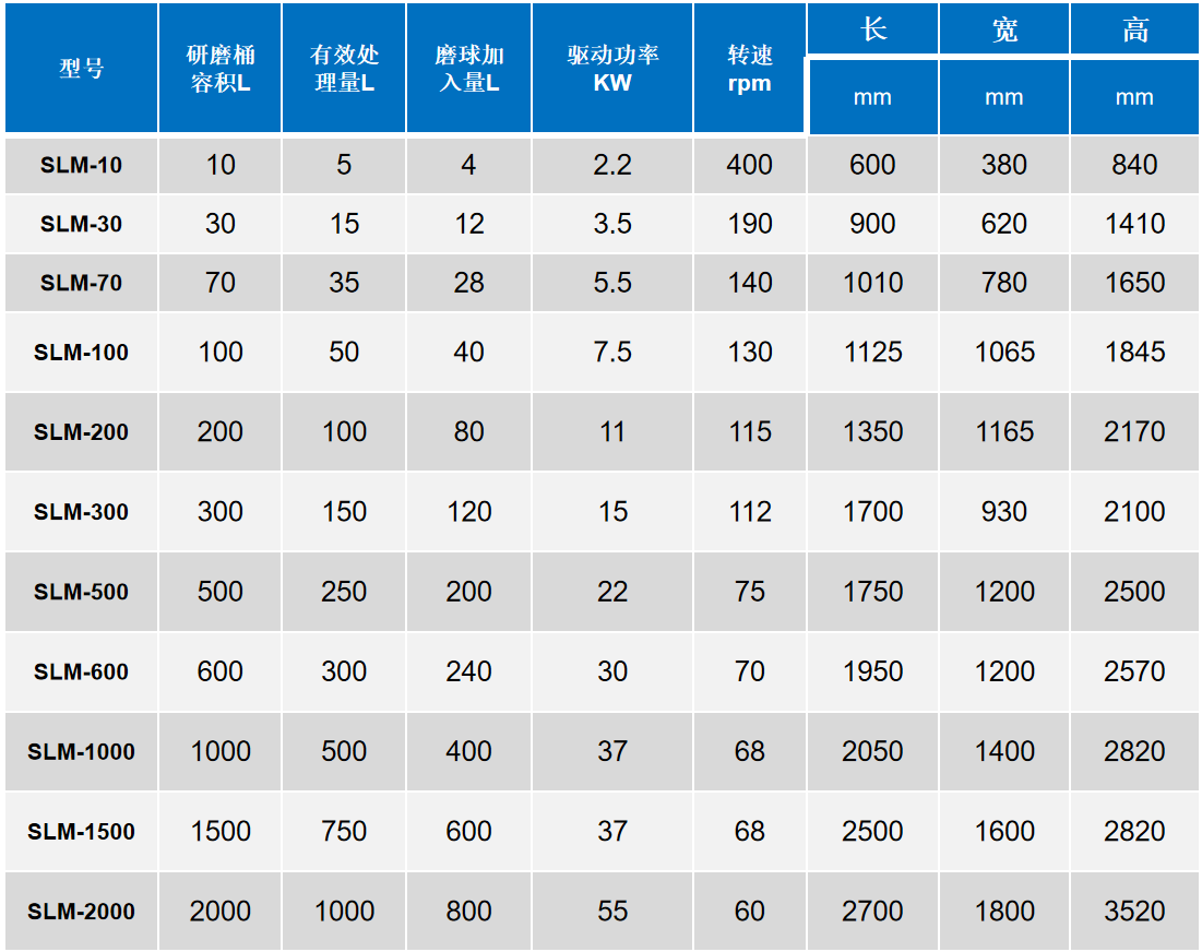 SLM型球磨機為立式攪拌型球磨機。物料不需要預(yù)混合即可直接加入帶夾套的研磨缸內(nèi),利用高速研磨并采用電動、氣動隔膜泵進行循環(huán)以達到快速的破碎、分散效果。快速循環(huán)的物料通過激烈地攪動研磨介質(zhì)層,從而得到較窄的粒徑分布。通過球磨缸底部的篩網(wǎng)板,允許較粗的微粒迅速通過,對粗粒達到破碎的效果。